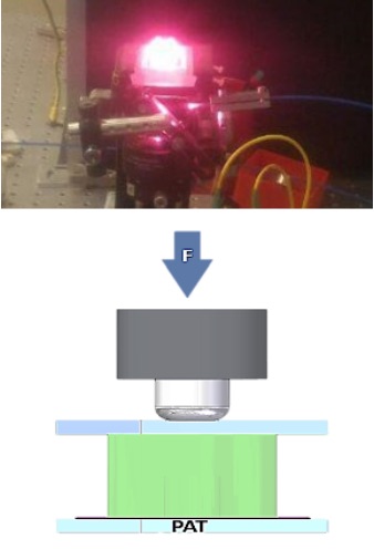 Diseases like arteriosclerosis or cancer are often accompanied by micro-scale stiffness changes in the affected area. Photoacoustic is able to provide 3D microscale images, which deliver together with a small compression force enough information to determine these biomechanical parameters, which can be used to find and characterize physiological and pathological tissue in and ex vivo. In combination with optical coherence tomography even more precise results can be achieved. The image shows photoacoustic imaging in action and a scheme describing photoacoustic elastography.