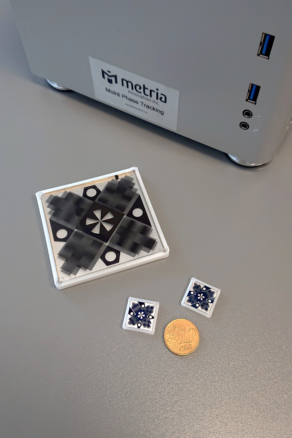 Several systems have been developed to track the position of specialized markers, while being exposed to strong magnetic and radio frequency fields. One or several cameras located in the magnet bore have proven effective for accurately tracking head motion during long acquisitions and thereby improving the image quality in long MRI acquisitions.