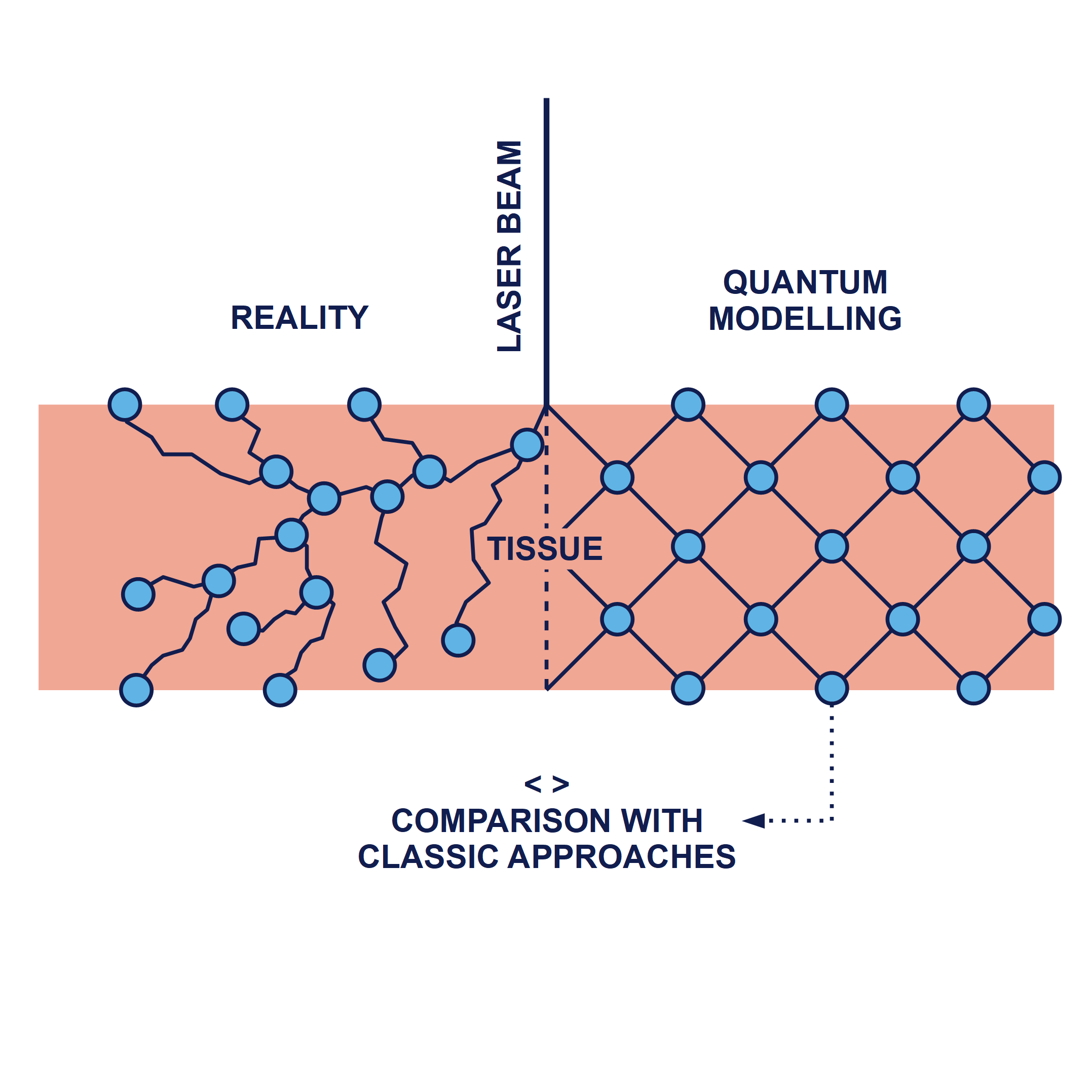 Photon-tissue interaction is a phenomenon which allows to acquire medical images such as optical coherence topography (OCT), computed tomography (CT) or positron emission tomography (PET). Medical imaging research – including research being conducted at our center – heavily relies on acquiring, reconstruction and analyzing medical images in order to characterize diseases in clinically-relevant imaging cohorts. This project aims to build up the fundamental building blocks of photon-tissue interaction for medical image reconstruction in the quantum domain by investigating various approaches such as quantum walk, optimization as well as solving heat equations. We currently focus on OCT imaging examples, since it can deliver proof-of-concept with small data (high resolution but in a small field of view) and in 2D. Findings of this project will be continuously adopted to 3D imaging.