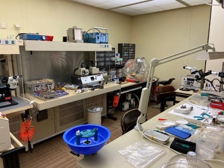 The cleanroom for electro/mechanical assembly supports different projects, which needs an assembly, moulding or electrical testing of implant, electrodes or delicate devices where an dust free area is needed.