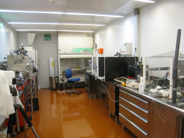 This clean room (class 1000) is equipped with a laboratory oven, a clean workbench and an optical microscope.