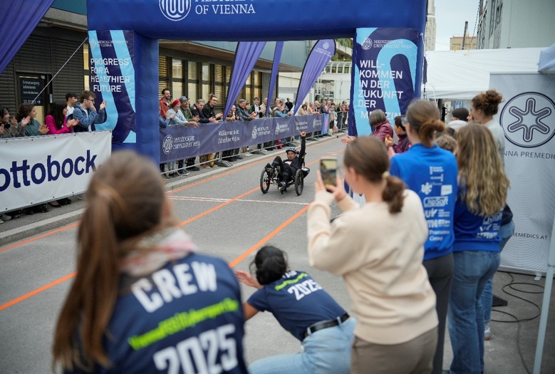 The ViennaFES | Cybersportday 2025 was an exciting international FES-Cycling race in which pilots with spinal cord injuries (SCI) competed using only their paralyzed leg muscles activated by electrical stimulation. The race took place on a 400-meter outdoor track and brought together five pilots from three different countries.