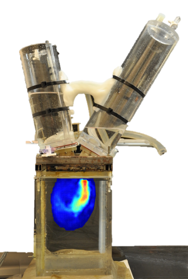 Für die Beurteilung von Hilfsmitteln, Prothesen und Diagnoseinstrumenten sind In-vitro-Tests unverzichtbar. Solche Simulationen erfordern die Nachahmung sehr unterschiedlicher hydraulischer Verhältnisse im Herzen selbst, in der pulsierenden Aorta und den Arterien, im venösen System und in Pumpen. Je nach Fragestellung muss die Testflüssigkeit hydraulische Eigenschaften, Ultraschallechoeigenschaften ähnlich wie Blut, optisches Reflexionsvermögen für Strömungsvisualisierung und Particle Image Velocimetry oder Sterilität und spezielle metabolische Eigenschaften für Zellkulturen nachahmen. Im Laufe der Jahre hat unsere Gruppe eine ganze Reihe von Testpumpen, Scheinkreisläufen und Hybridkreisläufen entwickelt, um alle unterschiedlichen Anforderungen zu erfüllen.