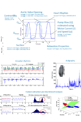 Es wurde eine breite Palette von Algorithmen zur Bewertung der Hämodynamik des Patienten entwickelt. Unter ausschließlicher Verwendung von sensorlos abgeleiteten Pumpendaten ist es möglich, den Pumpenfluss abzuschätzen und andere hämodynamische Parameter abzuleiten, z.B. den Status der Aortenklappe, die Kontraktilität des Ventrikels, den Herzrhythmus, die Relaxation des Ventrikels und die Frage, ob die Pumpe den Ventrikel zum Kollaps bringt: ein Mechanismus, der als Sog bezeichnet wird. Darüber hinaus ist es möglich, anhand der Leistungsaufnahme der Pumpe unerwünschte Ereignisse wie eine bevorstehende Pumpenthrombose vorherzusagen.