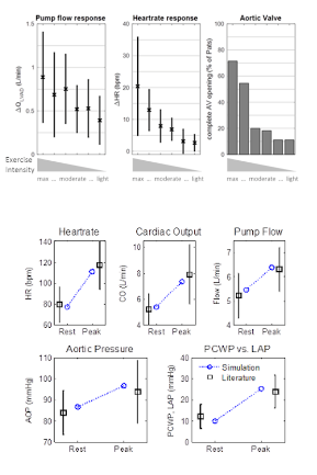 Die Belastungsphysiologie während der VAD-Unterstützung wird mit Hilfe von zuvor entwickelten Pumpenüberwachungsalgorithmen in Kombination mit Aktivitätsdaten aus kardialen Rehabilitationsmaßnahmen analysiert. Die heterogenen hämodynamischen Reaktionen auf die Belastung können untersucht werden und bieten ein klareres Bild des Patientenstatus. Vergleiche mit numerischen Simulationen ermöglichen das Verständnis von Ähnlichkeiten mit typischen hämodynamischen Szenarien, wie z.B. reduzierte Kontraktilitäten oder schlechtere chronotrope Reaktion.